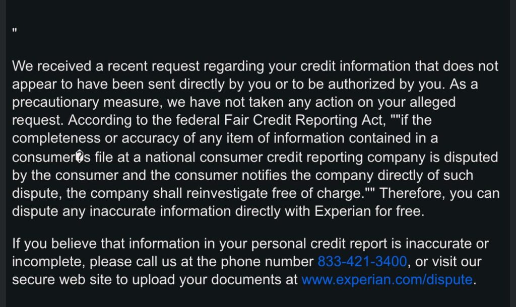 We understand that you might receive automated stall emails or letters from credit bureaus, data furnishers, or secondary bureaus. These are common tactics used to discourage you from attacking and fixing your credit. They may even claim that the letter doesn’t appear to be from you, despite you creating the attack yourself.